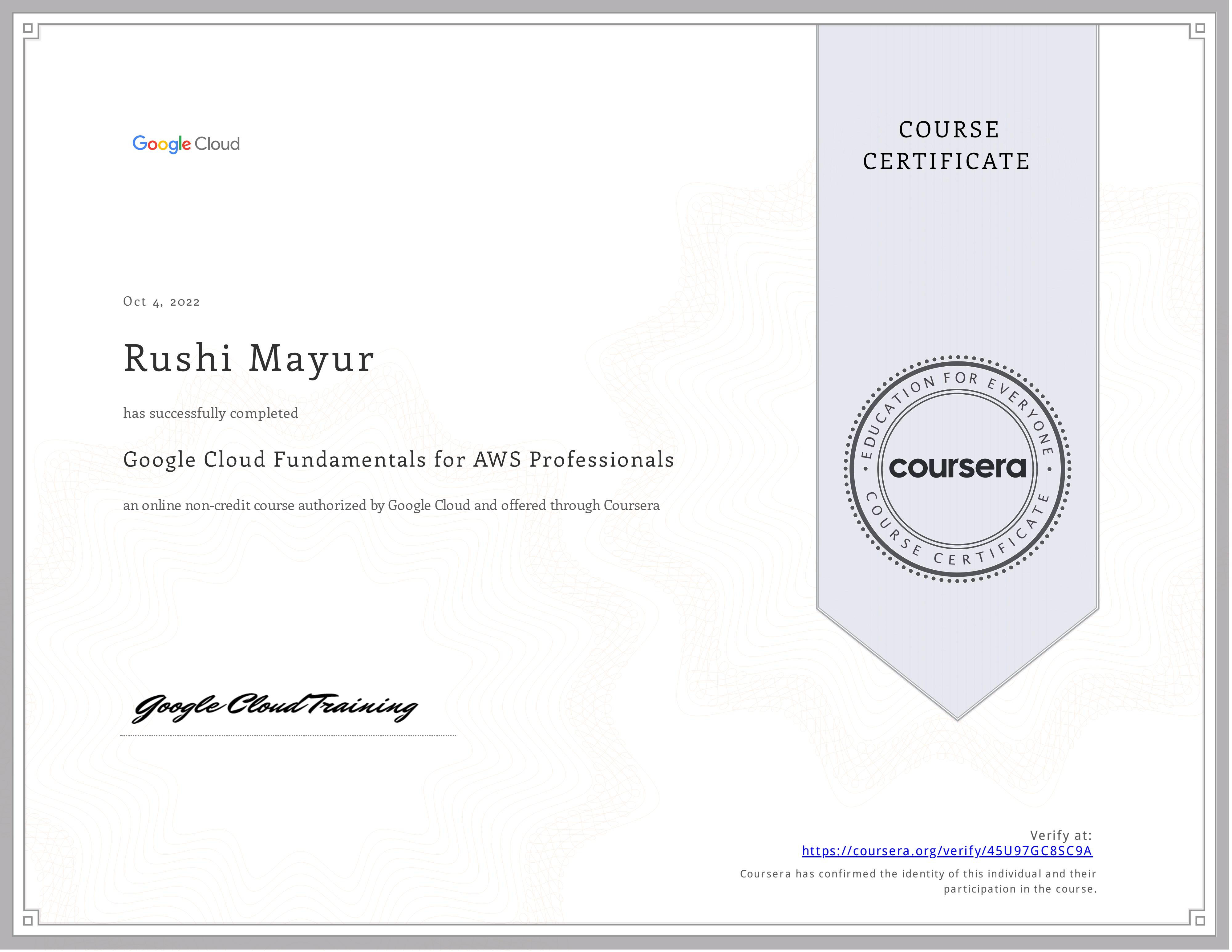 Google Cloud Fundamentals For AWS ProfessionalCoursera